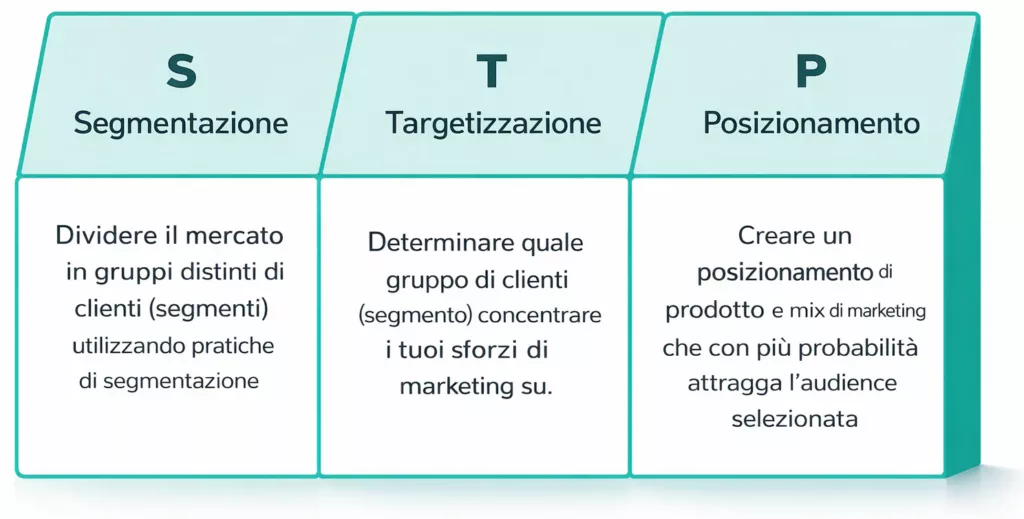 Questo lavoro si chiama analisi STP, che sta per Segmentation, Targeting, Positioning. È uno dei modelli di marketing più solidi che esistano, nato in ambito accademico ma applicabile concretamente in qualsiasi azienda B2B che voglia smettere di comunicare nel vuoto.