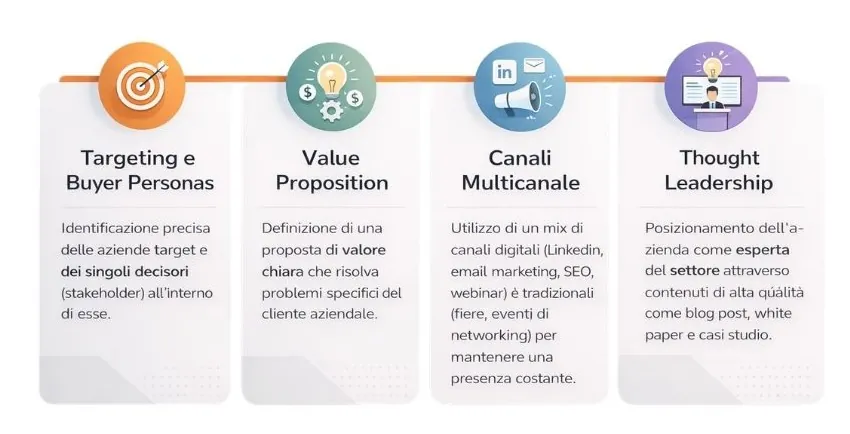 Nel B2B questa fase è ancora più critica che nel B2C. I cicli di vendita sono lunghi, i decision maker sono spesso multipli, i valori dei contratti sono alti e gli errori di posizionamento costano molto di più di un post sbagliato.